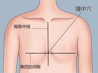 位置及方法:膻中穴在两乳头连线的中点。用手掌大鱼际(手掌内侧凸起处)上下轻柔摩擦,直到局部发热,能理气宽胸、舒缓心肺不适。